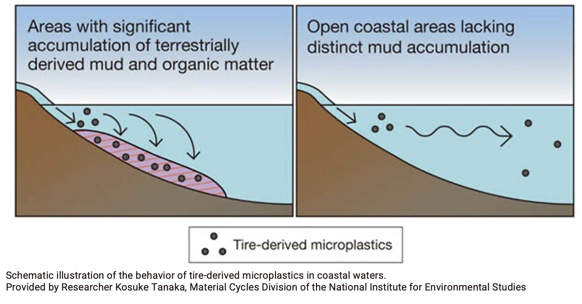 The behavior of chemical substances such as additives contained in tires will be examined in future studies.