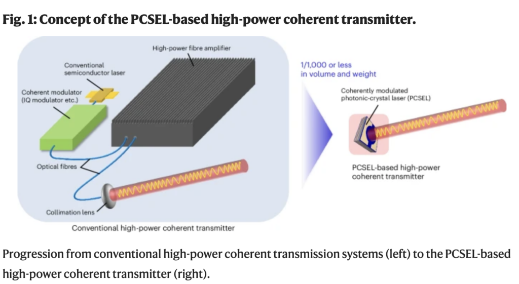 In communication experiments simulating propagation loss in space, they demonstrated that communication could be established even when light was attenuated approximately 2 to 3 times stronger than conventional photonic-crystal lasers. This makes intersatellite communication over propagation distances of approximately 60,000 kilometers feasible. By further improvements and enlarging such photonic-crystal devices, space communications over 380,000 kilometers between the Moon and Earth could become possible.