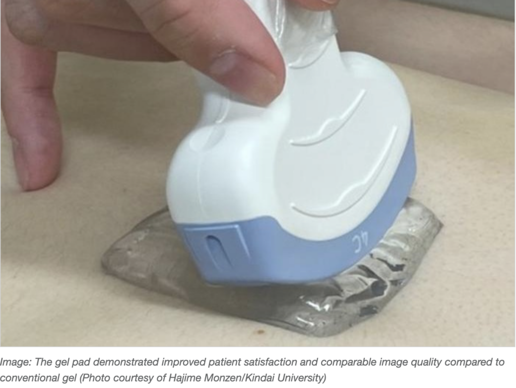 A research team at Kindai University has developed a new solid gel pad for use in ultrasound examinations which is reusable and does not require any gelatine use. Thus, after ultrasound checks no residues on the body remain.
